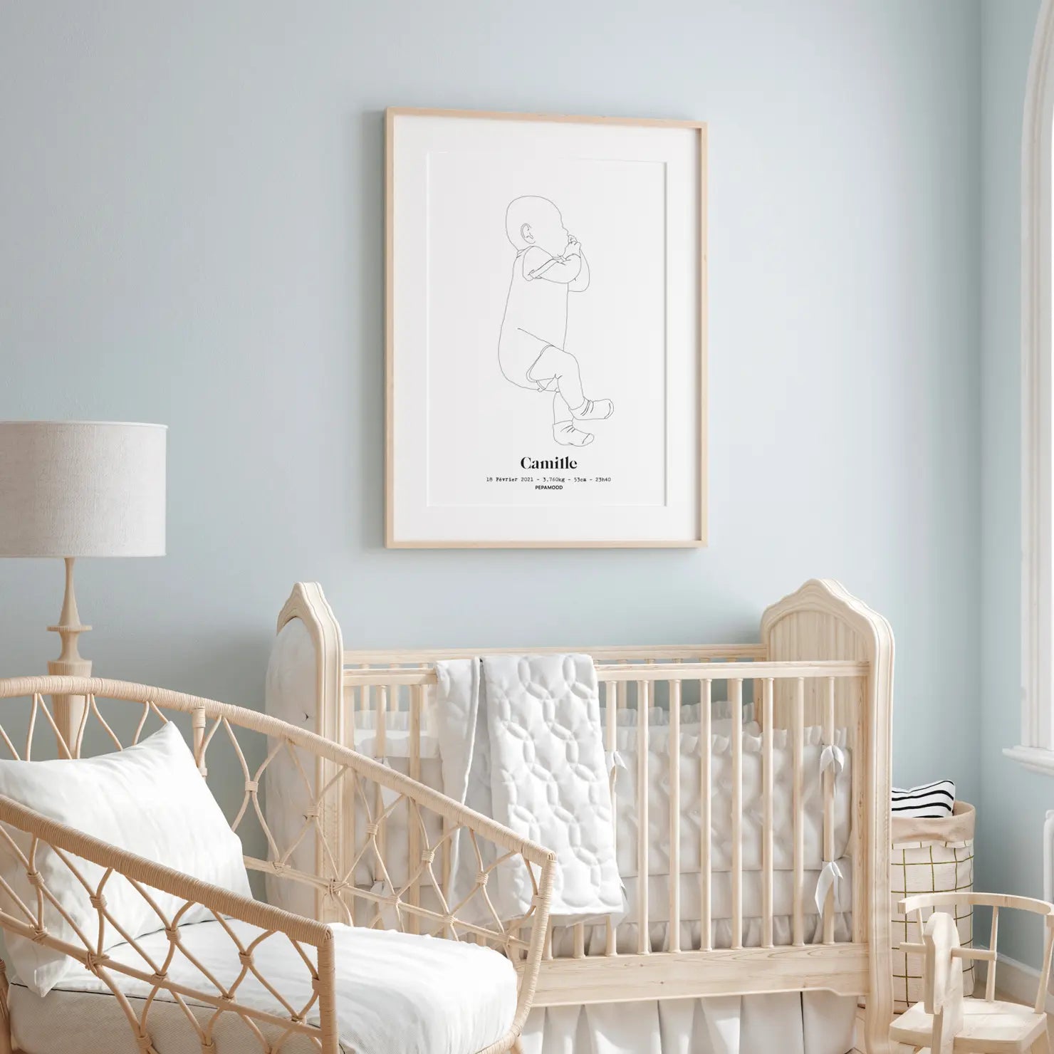 Cette affiche trouvera sa place dans une chambre ou un espace familial, pour célébrer la naissance avec simplicité et tendresse.