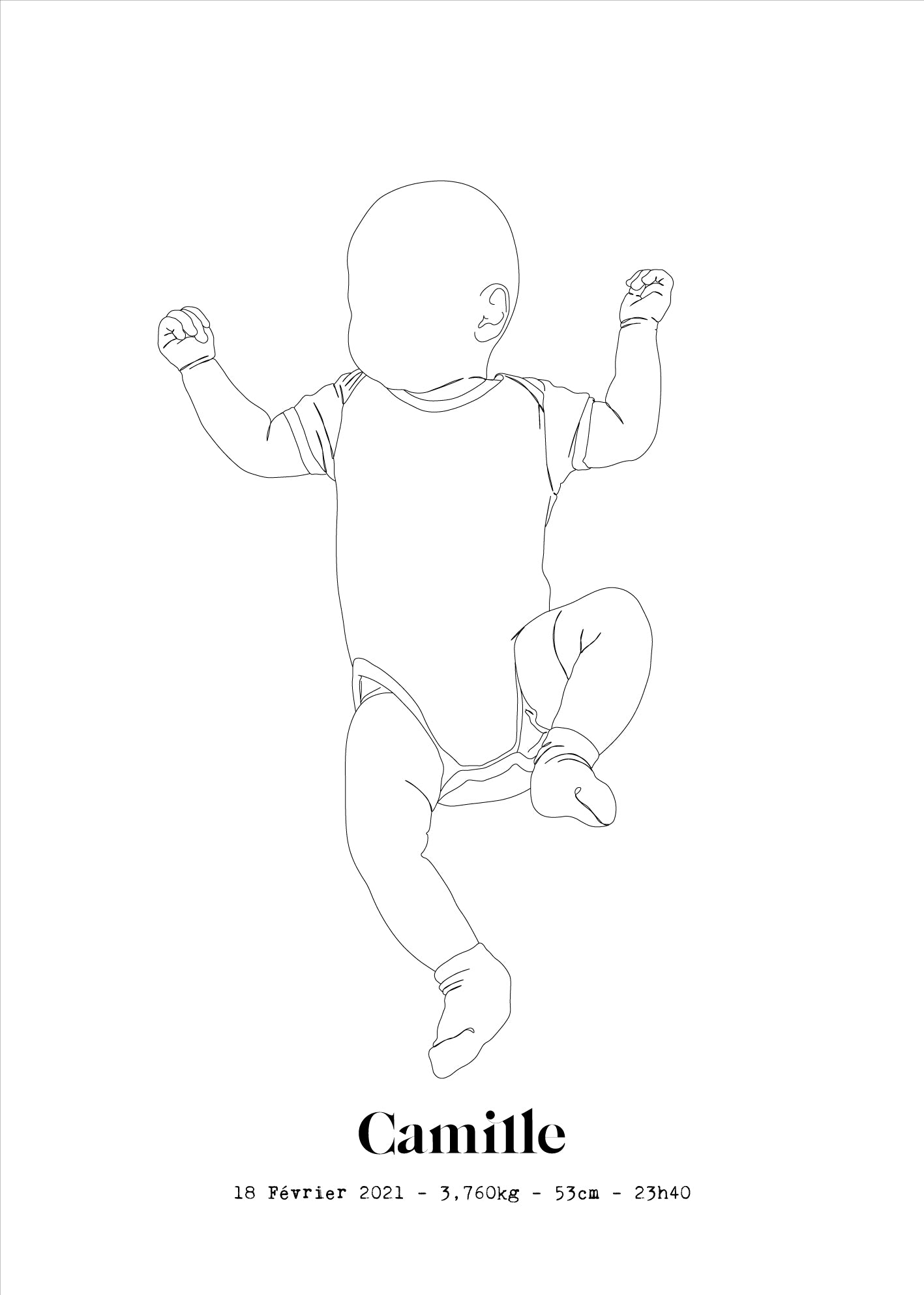 Entièrement personnalisable, elle permet d’ajouter les informations essentielles pour rendre ce souvenir unique : prénom, date, poids, lieu...