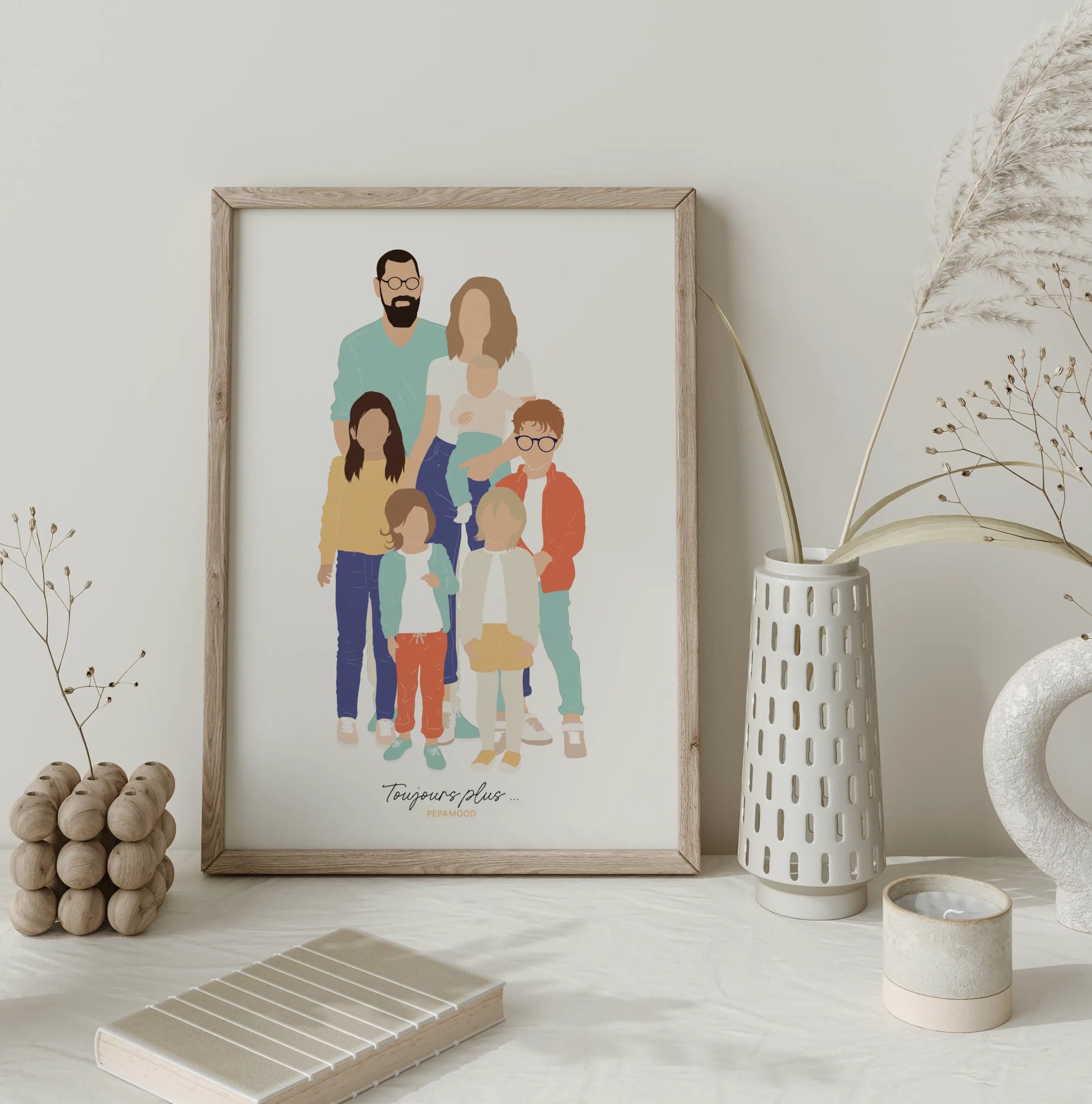 Personnalisez-la facilement avec 2 à 20 personnages (famille, amis ou animaux) pour créer un portrait unique, fidèle à votre histoire.