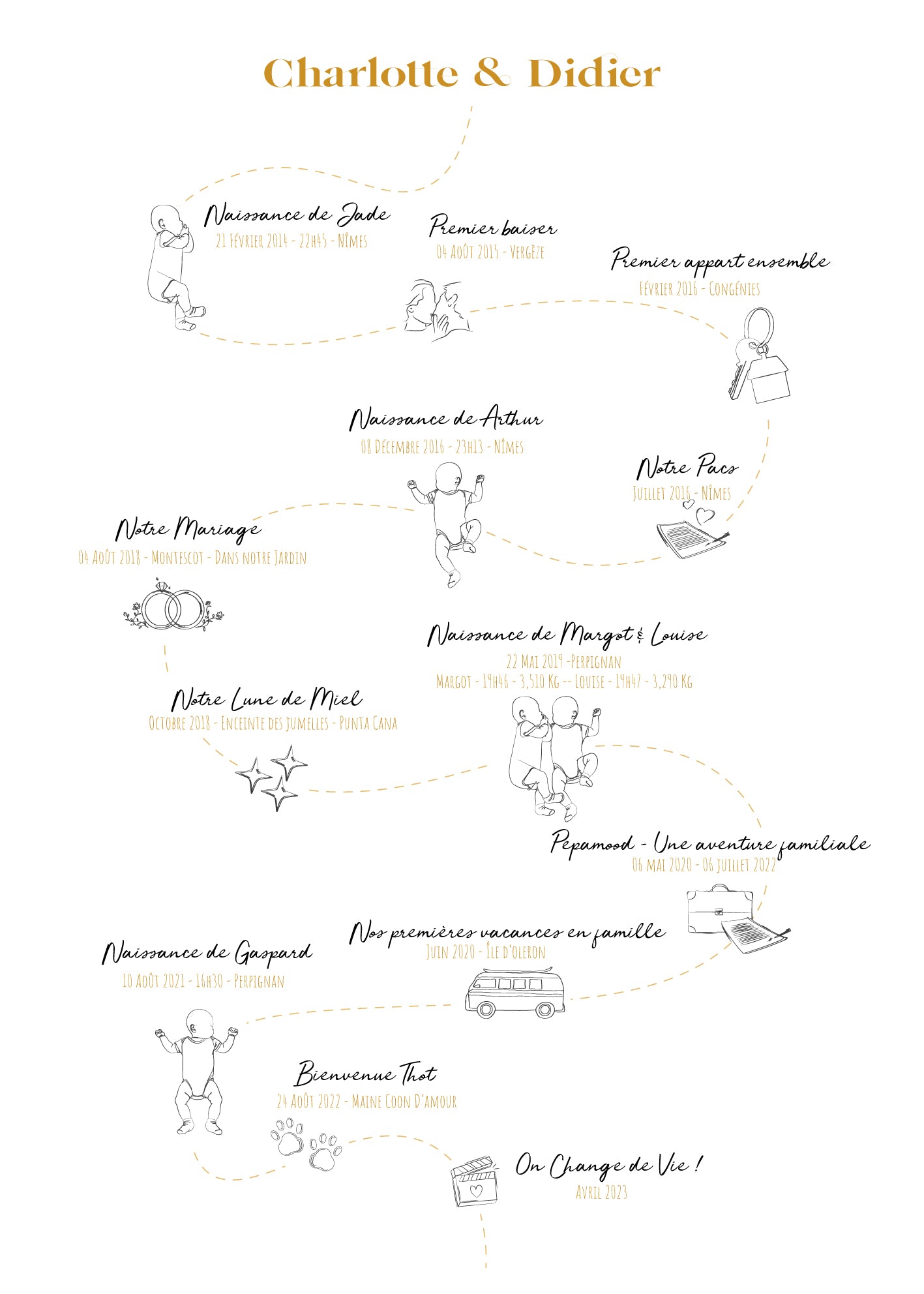 Personnalisez-la avec jusqu’à 10 dates clés : moments familiaux, amoureux, amicaux ou professionnels.